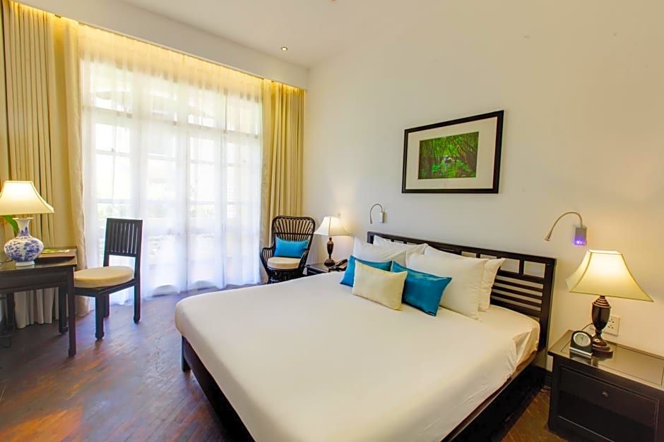 Located in the Palm building, Junior Suite overlooks the tropical garden and include a living room, seating area and en suite bathroom. Benefits include: - Welcome drink upon arrival - Daily seasonal fresh fruit in room - Complimentary one Vietnamese famous roll for 2 persons per stay - Complimentary round trip airport transfer - Complimentary 1 credit voucher 100,000 VND for laundry service - Complimentary usage of sauna, steam and recreation facilities
